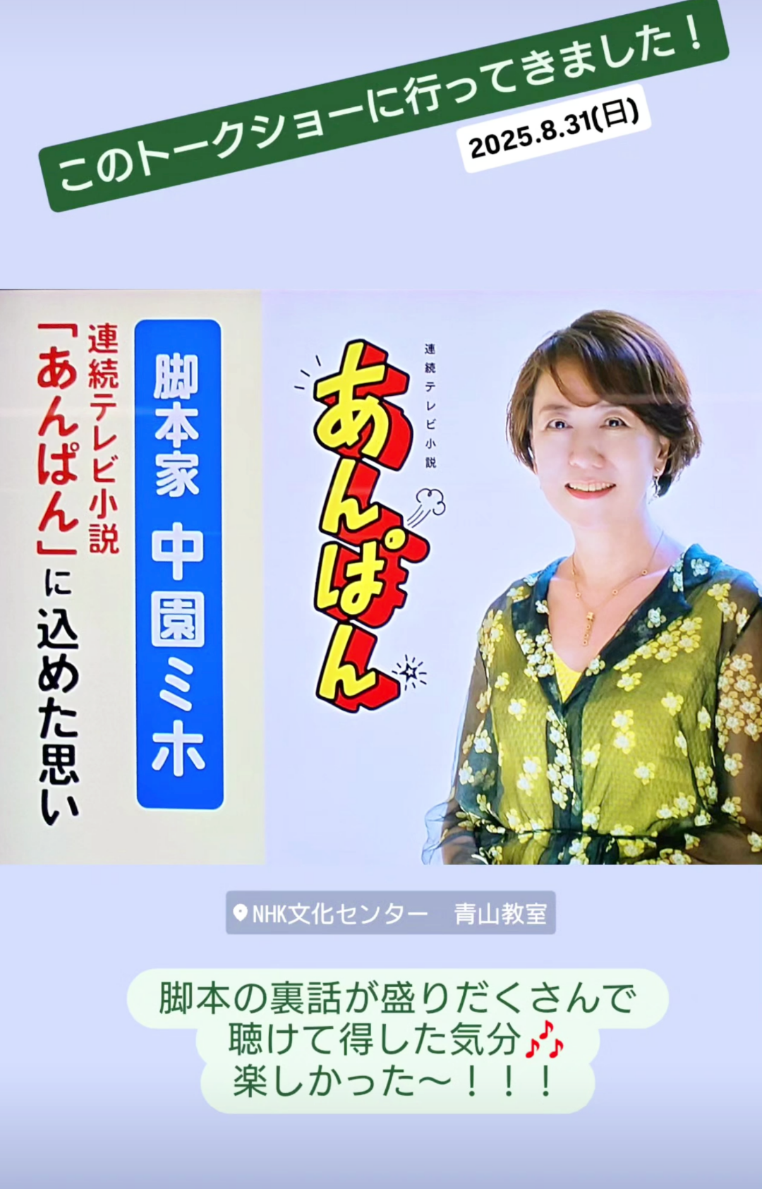 2025年08月31日に脚本家中園ミホさんのトークショーにいきました。